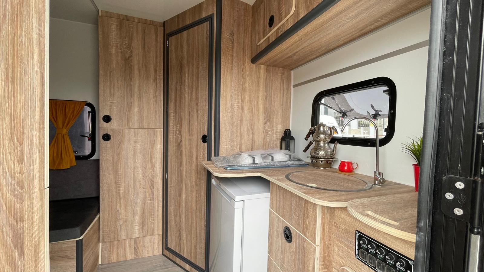 🔹 Uzunluk: 390 cm 🔹 Genişlik: 210 cm 🔹 Yükseklik: 250 cm 🔹 Boş Ağırlık: ~750 kg 🔹 AZY: 1.200 kg 🔹 Gövde: Kompozit Yalıtımlı 🔹 Kapı: Dometic Marka 🔹 Pencereler: Karartmalı + Sineklik 🔹 Elektrik: 13 Pin Bağlantı 🔹 Şasi: Al-Ko Sistem 🔹 Su Dolum: Harici Kapak 🔹 Tahliye: Kolay Erişimli Vana 🔹 Yatak Kapasitesi: 2-3 Kişi 🔹 Masa: Dönüşebilir Yataklı 🔹 Depolama: Üst Dolap + Baza 🔹 Aydınlatma: LED Sistem 🔹 Zemin: Dayanıklı Parke 🔹 Pencereler: Geniş Açılır 🔹 Ocak: 2 Gözlü LPG 🔹 Buzdolabı: 60L (12V/220V) 🔹 Evye: Paslanmaz Çelik 🔹 Temiz Su: 60L Tank 🔹 Atık Su: 30L Tank 🔹 Elektrik: 12V & 220V 🔹 Akü: Dahili Akü & Panel 🔹 Giriş: Harici Elektrik 🔹 Isıtma: Ops. Webasto 🔹 Klima: Opsiyonel 🔹 Tente: Opsiyonel 🔹 Dış Duş: Opsiyonel 🔹 TV & Anten: Opsiyonel 🔹 Güneş Paneli: Opsiyonel